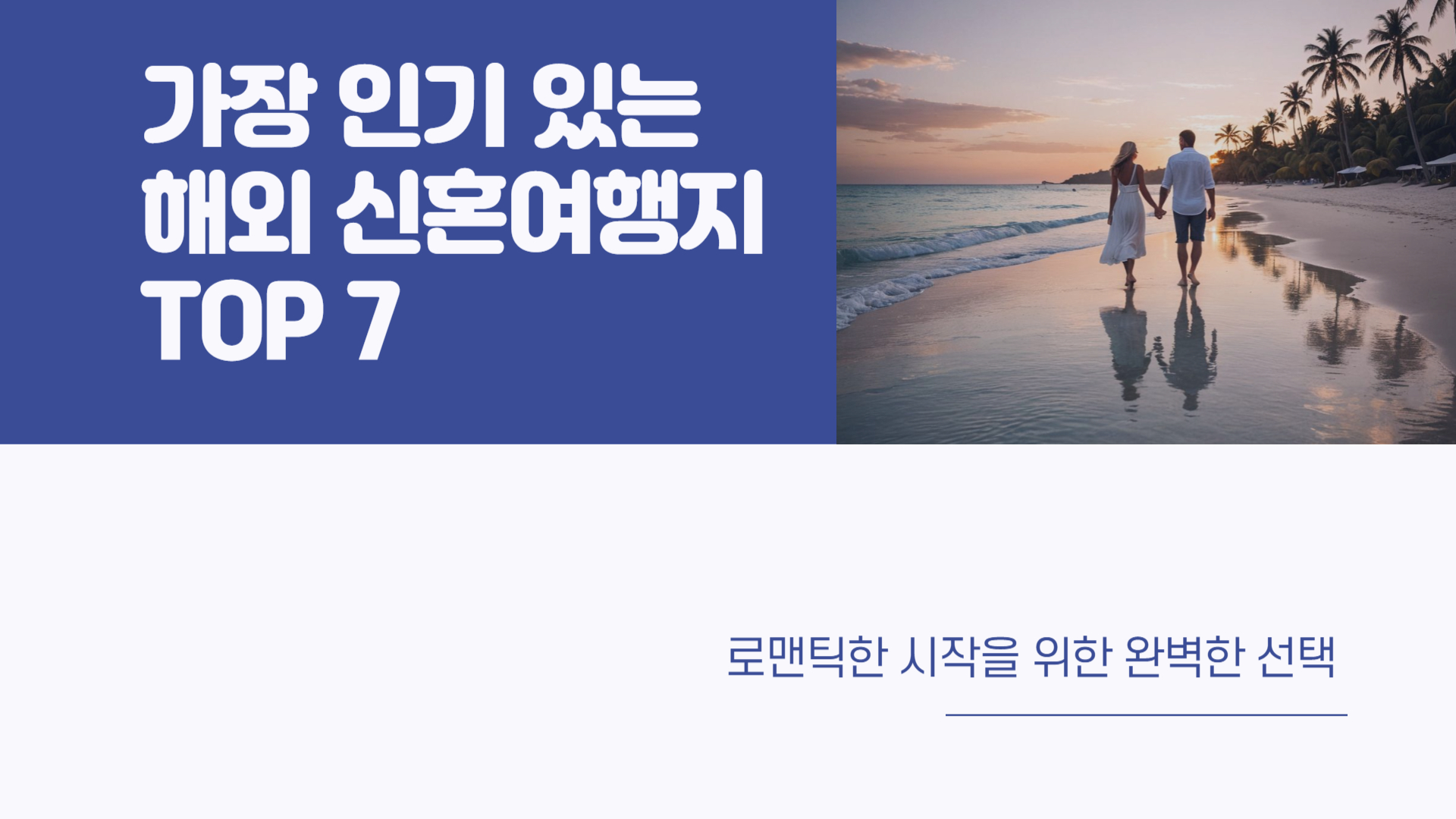 결혼 후의 첫 여행, 신혼여행은 두 사람의 사랑을 축하하며 평생 잊지 못할 추억을 만드는 특별한 시간입니다. 2025년에는 어떤 해외 여행지가 신혼부부들에게 가장 사랑받고 있을까요? 이번 글에서는 최신 트렌드를 반영한 가장 인기 있는 해외 신혼여행지 TOP 7을 소개해 드립니다. 🥂