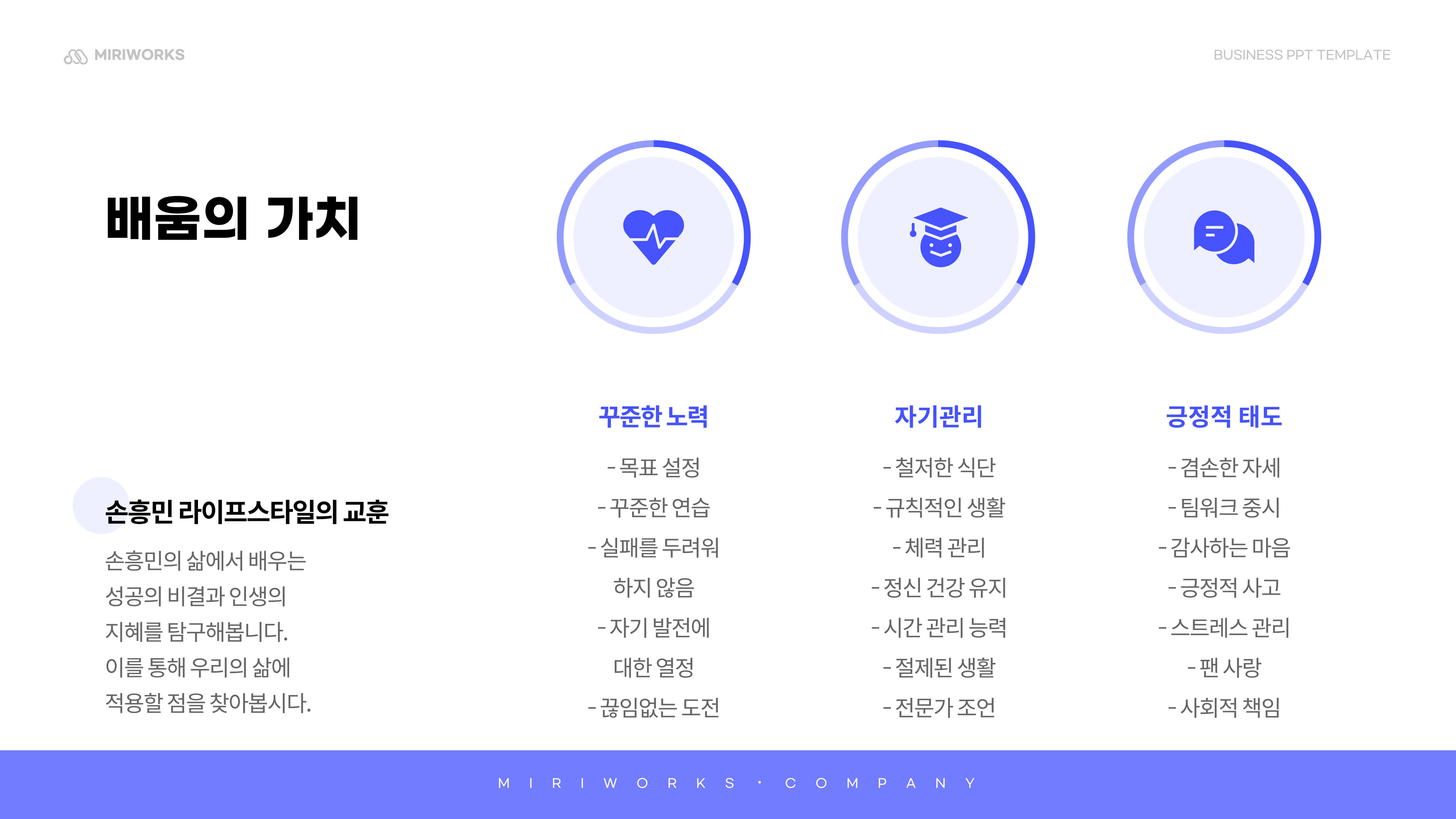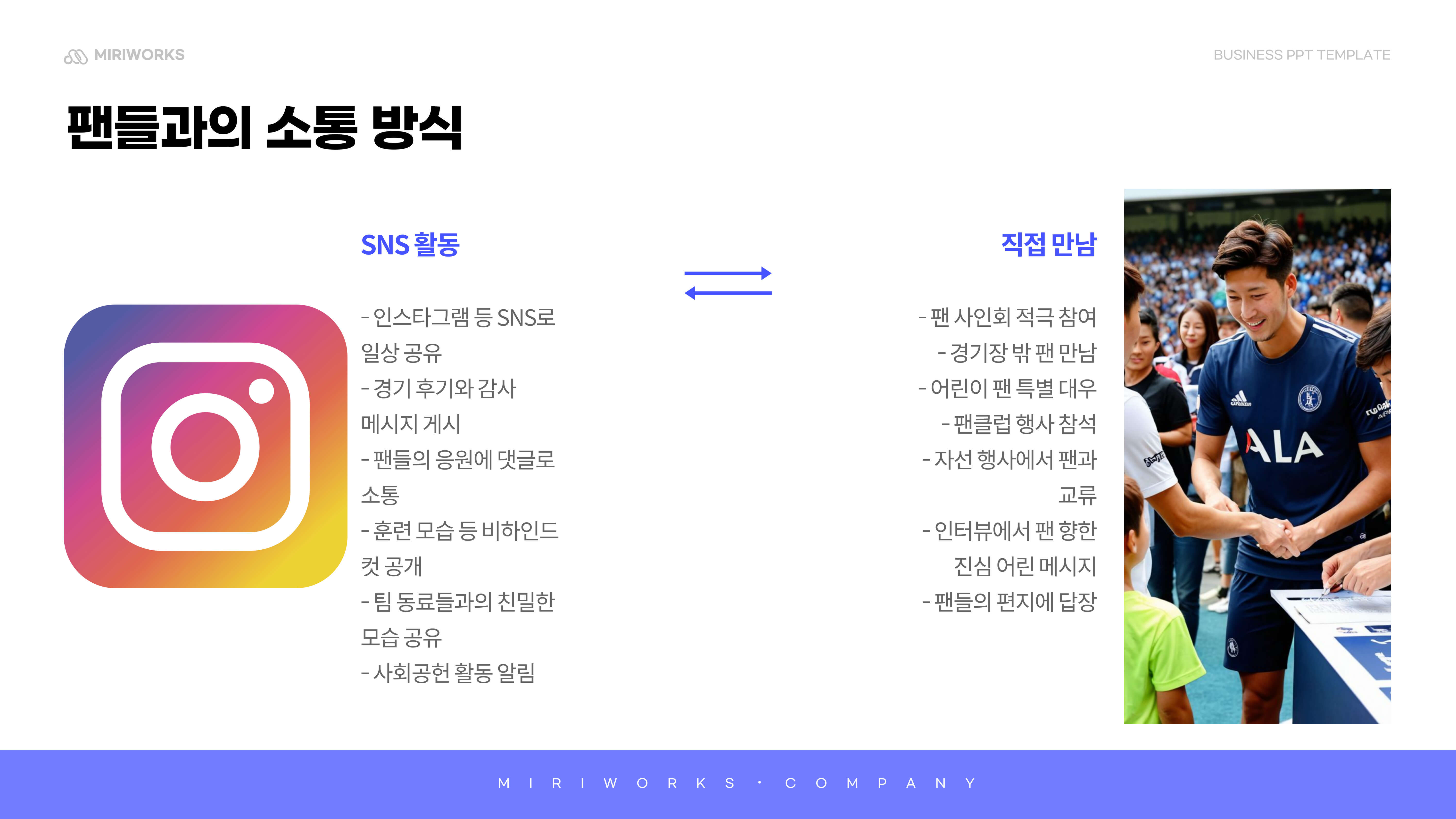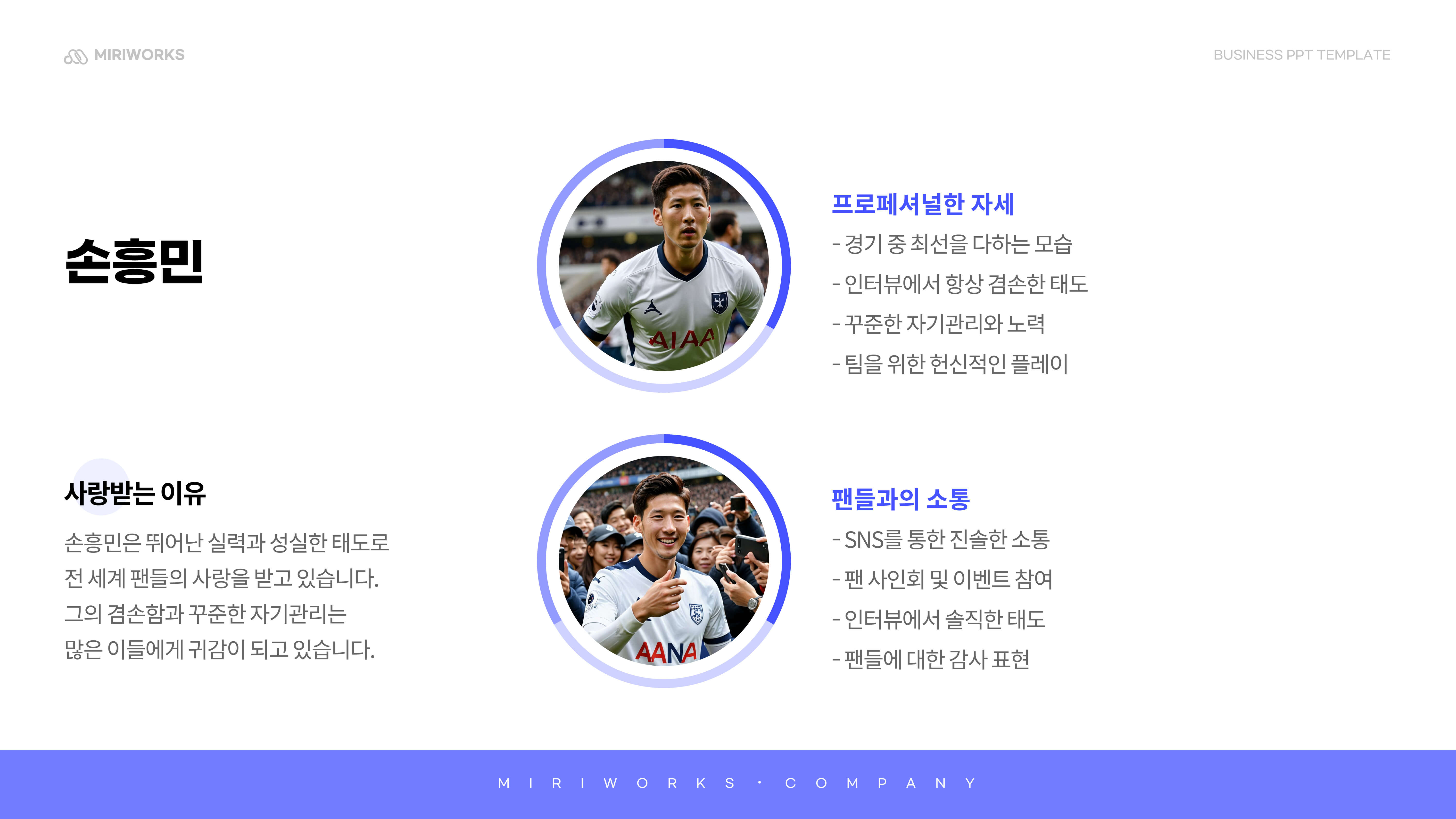 ✔ 꾸준한 자기관리: 손흥민은 항상 최고를 목표로 하며, 자기관리에 철저합니다.