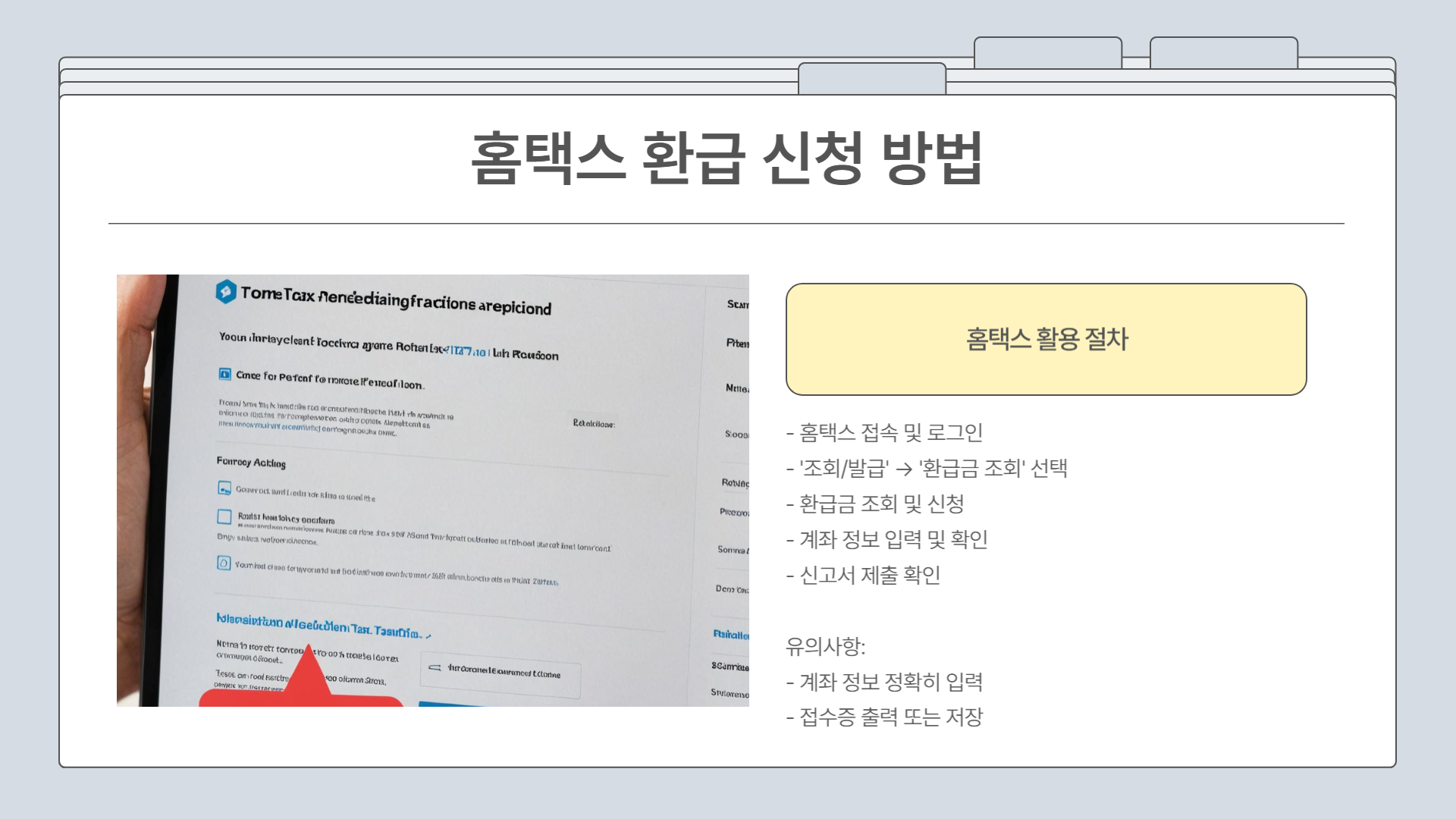홈택스를 활용하면 환급 신청이 훨씬 간편해지니, 미루지 말고 지금 바로 신청해 보세요!