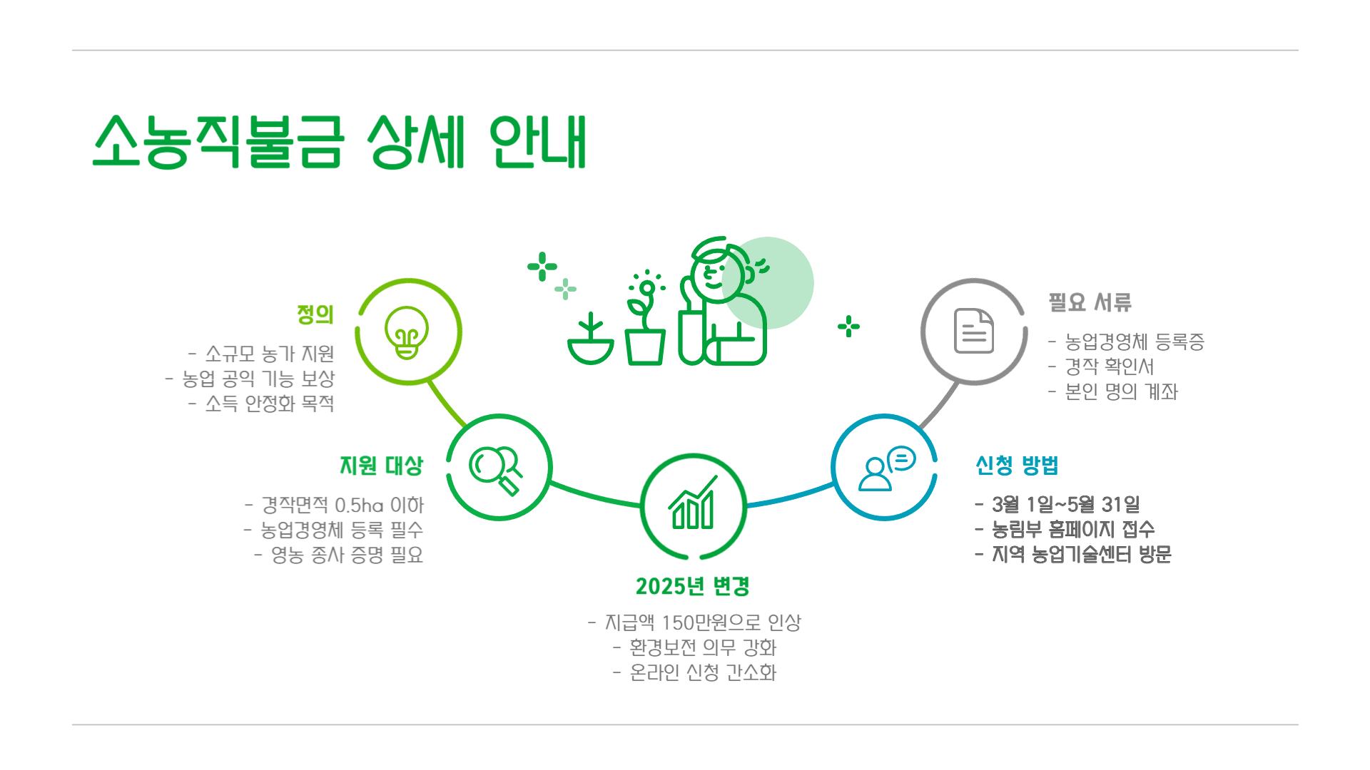 2️⃣ 소농직불금 지급액 인상: 소규모 농가를 위한 직불금이 2024년 대비 10% 인상되었습니다.